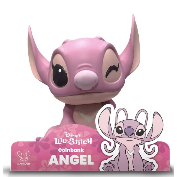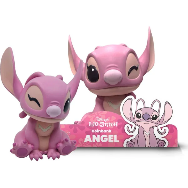 Tirelire Collector en vinyle représentant Angel, l’adorable compagne de Stitch. Hauteur : 20 cm. 2 modèles assortis : selon si elle cligne de l’œil gauche ou de l’œil droit.