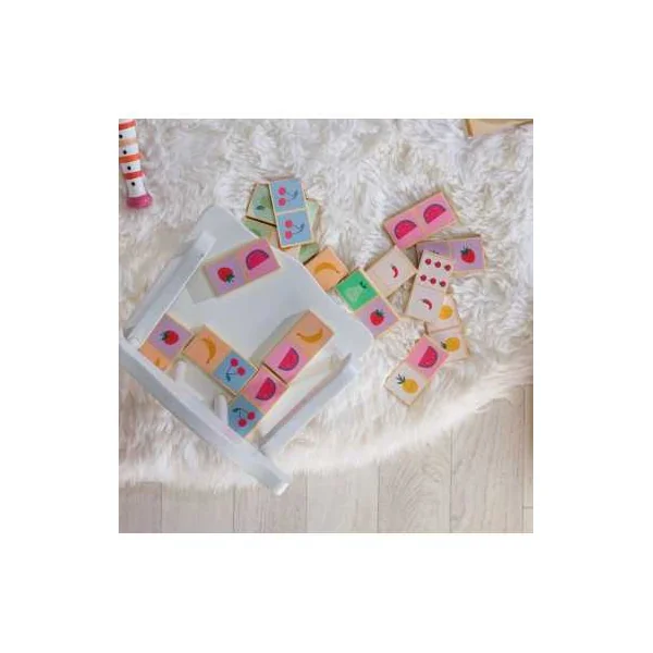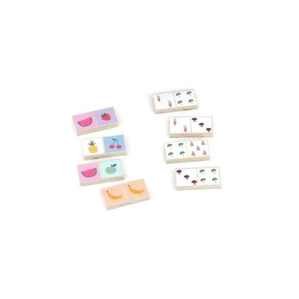 Avec leurs couleurs toutes douces, ils sont adaptés pour les enfants dès 2 ans. Des dominos réversibles avec une face pour associer les fruits et l’autre face pour associer les nombres (représentés par des légumes).