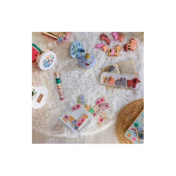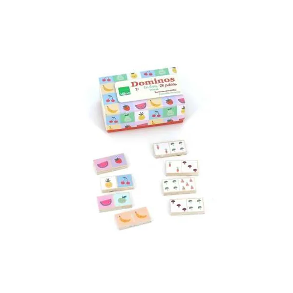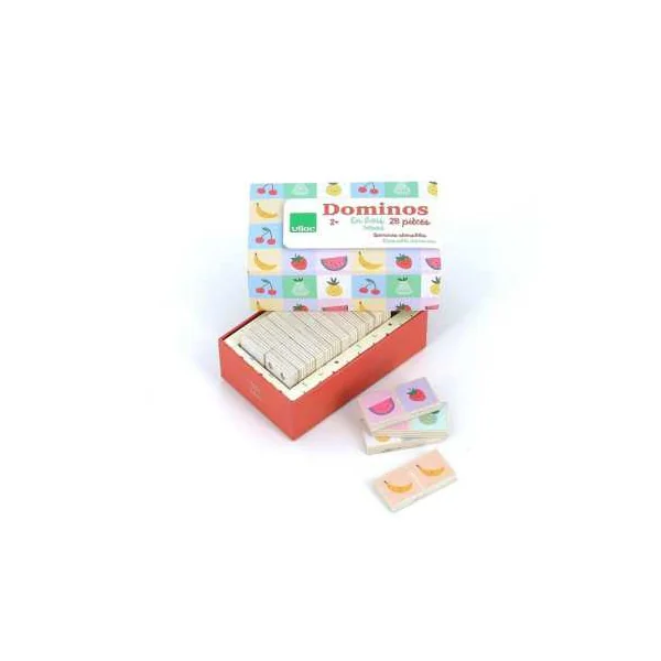Un éducatif en bois pour les enfants à partir de 2 ans qui contient 28 dominos réversibles en bois et 1 joli coffret de rangement.