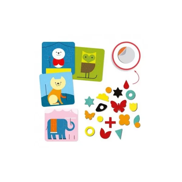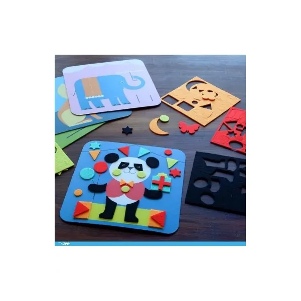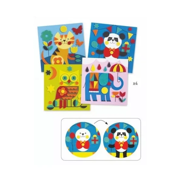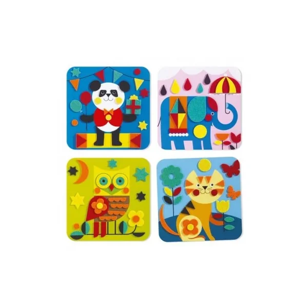 Découvrez les tableaux de feutrine « douces créatures » de Djeco, une activité de collage avec de la feutrine colorés autocollantes pour les enfants de 3 à 6 ans.