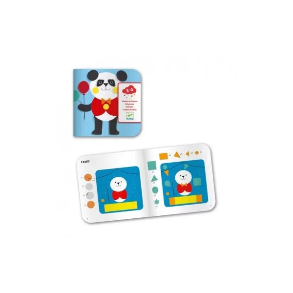 Ce coffret comprend 4 planches illustrées (format 20 x 20 cm), 114 gommettes illustrées autocollantes de 5 couleurs différentes et 1 livret explicatif pas à pas en couleurs.