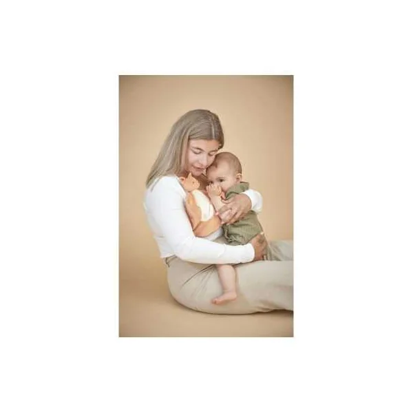 Ce compagnon tendre et pratique accompagne bébé dès les premières poussées dentaires, offrant à la fois réconfort et apaisement. Une extrémité en silicone souple et texturé masse délicatement les gencives sensibles, tandis que la texture toute douce du doudou invite aux câlins et au réconfort au quotidien.
