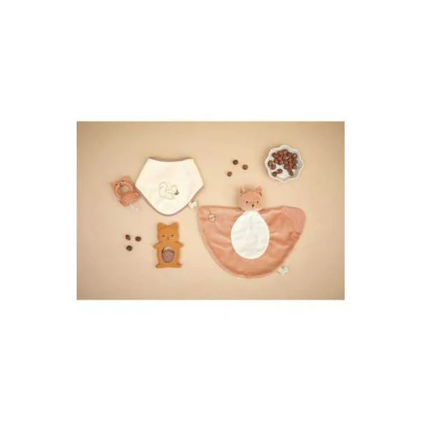Découvrez le doudou de dentition Écureuil de la collection Grignoti de Kaloo, un doudou plat de 23 cm présenté dans une belle boîte cadeau personnalisable.