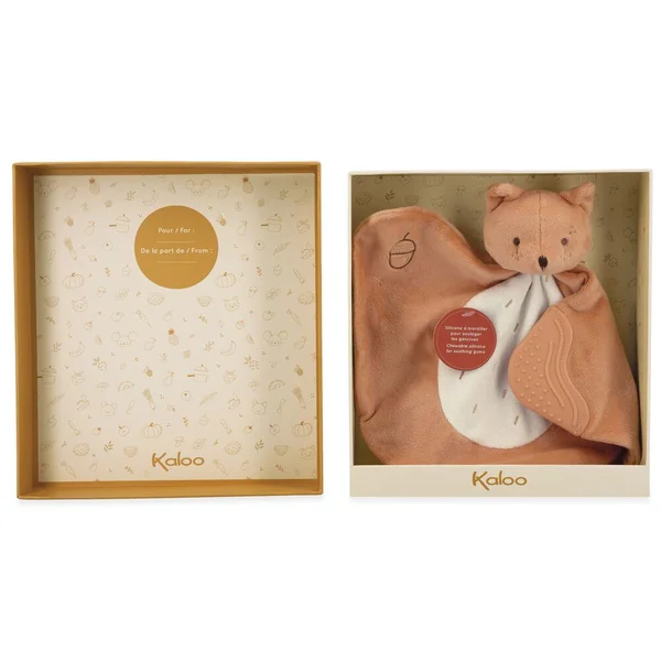 Découvrez cet adorable doudou de dentition écureuil de 23 cm. Concu pour accompagner bébé lors de ces premières poussées dentaires, ce doudou saura réconforter et apaiser bébé quand il en aura besoin. Son extrémité en silicone souple est spécialement concue avec des reliefs permettant de masser en douceur les gencives sensibles. La douceur de l’écureuil, grâce à son micro-velours, en fait le parfait compagnon pour apporter délicatesse et réconfort à bébé tous les jours. Une broderie délicate du fruit préféré de l’animal, la noisette, est présente et ajoute une touche d’élégance à ce doudou. Il est présenté dans une jolie boîte cadeau, personnalisable grâce au petit encart présent sous le couvercle. Le coffret peut être réutilisé comme boîte de rangement ou pour conserver les premiers souvenirs de bébé, dans une boîte assortie à son doudou préféré. Composé d’au moins 77% de matières et rembourrage recyclés. Lavable en machine à 30°C. Dès la naissance. rembourrage recyclés. Lavable en machine à 30°C. Dès la naissance.