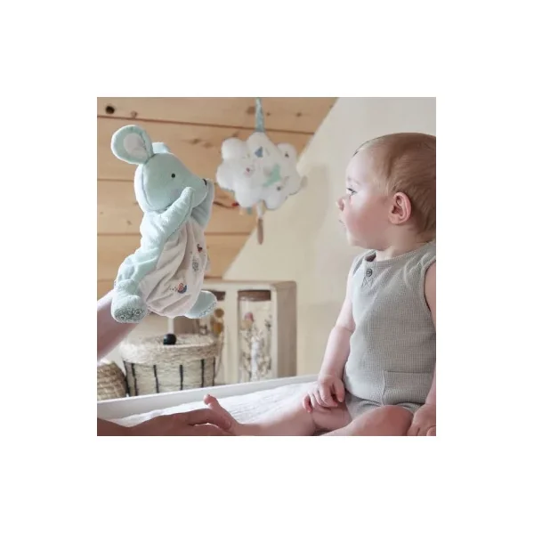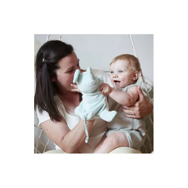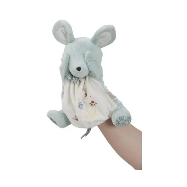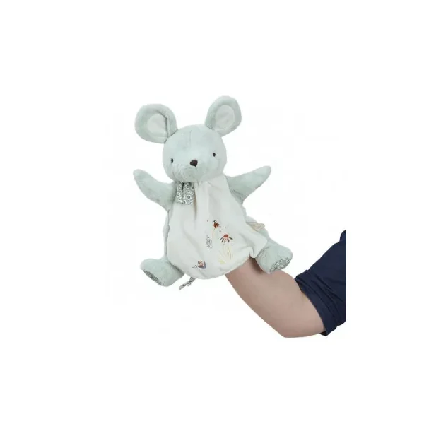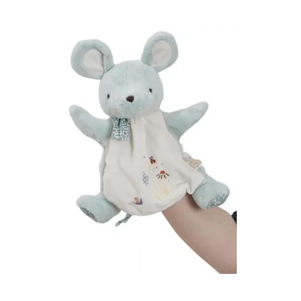 Le doudou marionnette Souris est la représentation de la fameuse comptine « Une souris Verte ». Les broderies racontant l’histoire sont cousues sur le ventre tout doux de la souris. Animez la marionnette souris au son de de la comptine pour partager un moment avec bébé en jouant au jeu du « coucou-caché ».