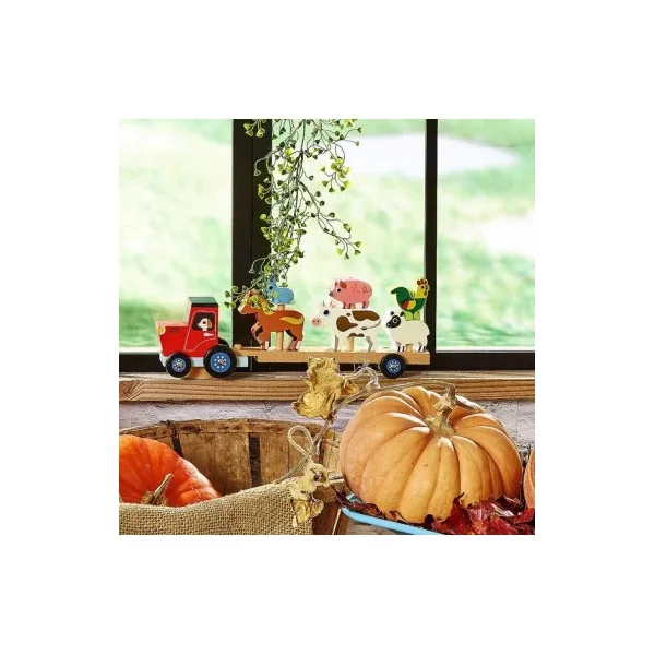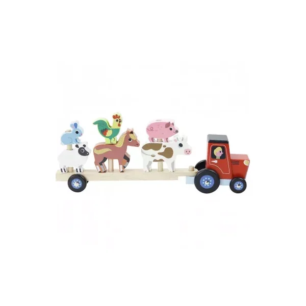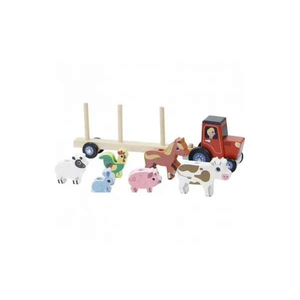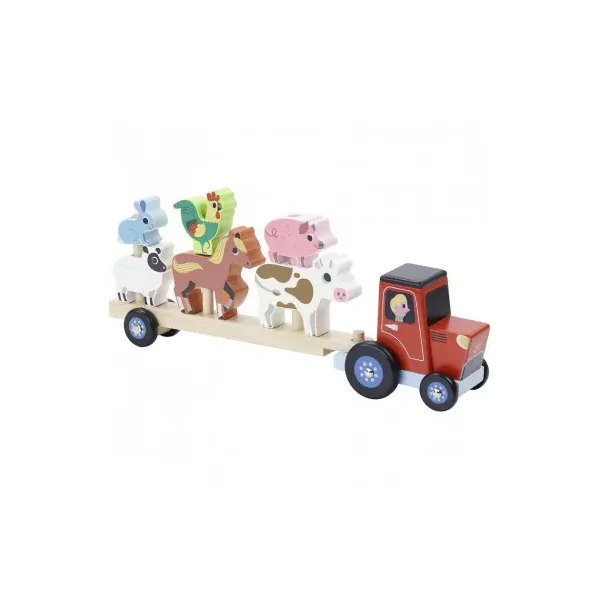 Après avoir joué avec ses animaux, c’est tellement rigolo de les ranger les uns sur les autres sur la remorque du tracteur. Mouton, vache, cheval, cochon, lapin et coq trouveront place dans la remorque du tracteur.
