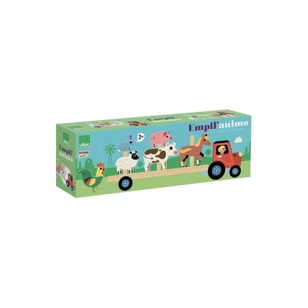 Découvrez le jeu empil’animo de la ferme de Vilac, un jouet d’éveil en bois pour les enfants dès 2 ans, un jeu d’empilement avec un tracteur et des animaux illustré par Ingela P.Arrhenius.