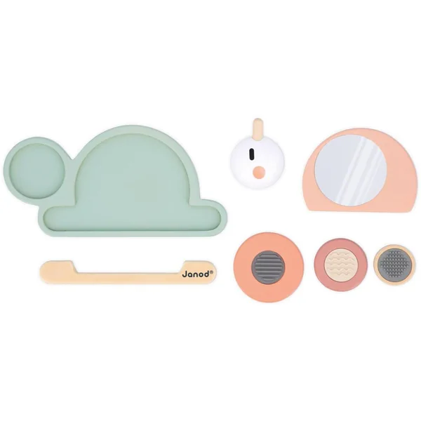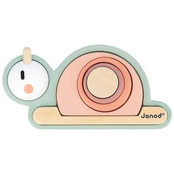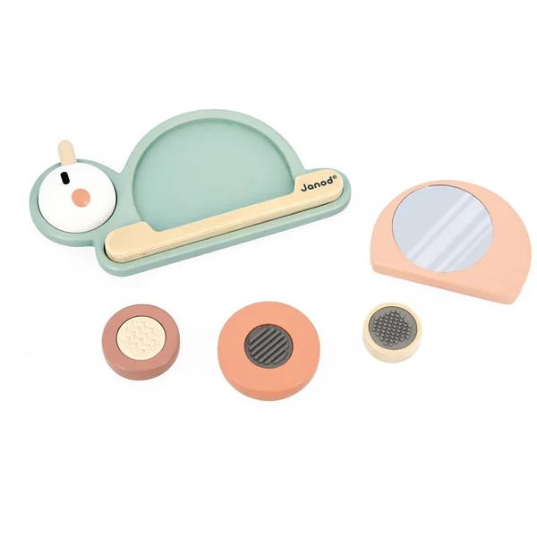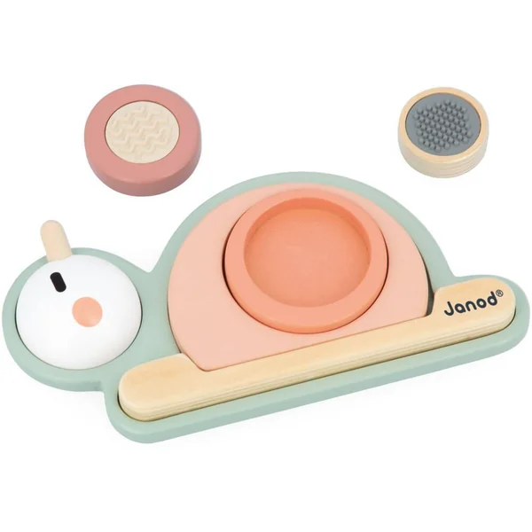 La coquille en colimacon de cet escargot cache bien des surprises ! Sous chaque bloc se trouve une texture différente ! Ce jeu est composé d’une base et de 6 pièces à empiler : 4 blocs sensoriels (un bloc avec un miroir et 3 blocs avec des reliefs différents en silicone) sans oublier la tête et le corps de l’escargot. Ce jouet est idéal pour que votre enfant développe son sens du toucher et sa motricité fine. Jouet d’éveil en bois FSCTM pour les enfants à partir de 12 mois.