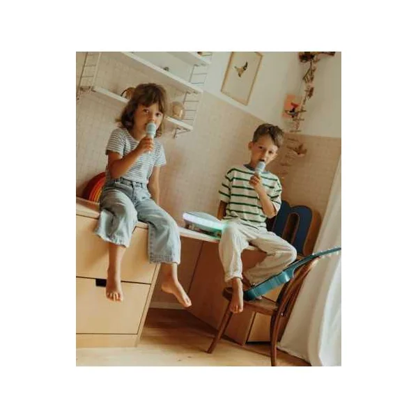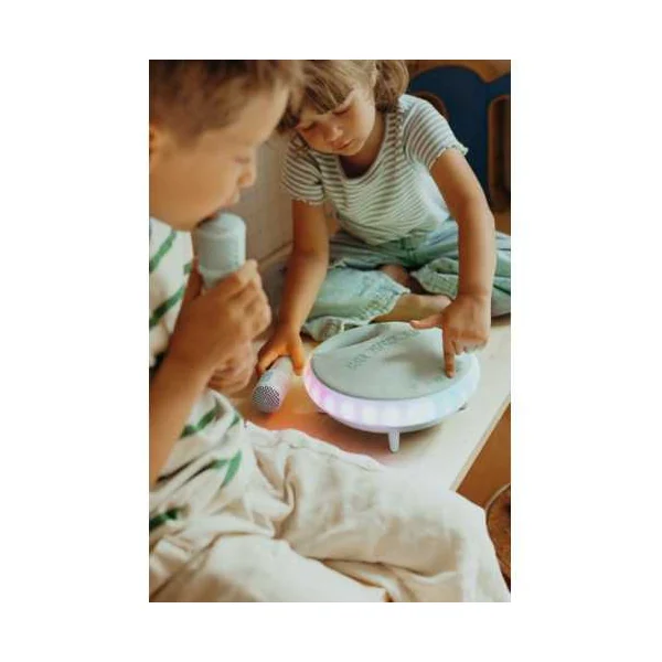 Le KidyKaraoke allie un design rétro irrésistible à une technologie sonore de pointe. Conçue par la marque belge Kidywolf, cette enceinte est pensée pour la manipulation des petites mains tout en offrant une qualité audio qui ravira toute la famille.