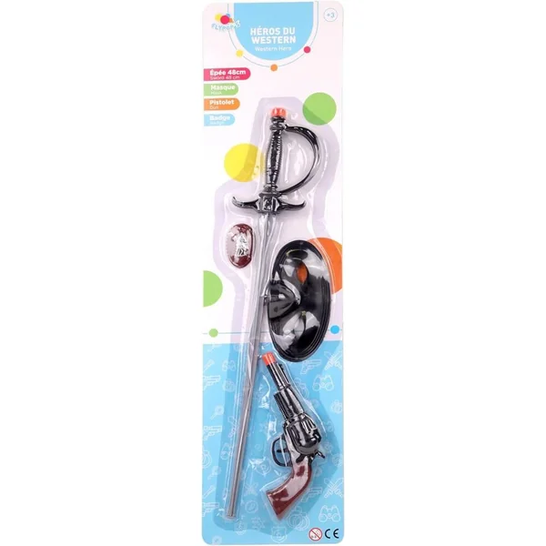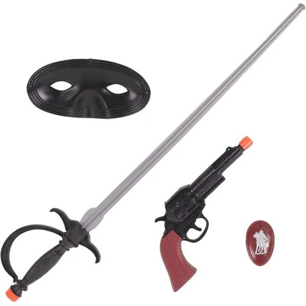 Ce jeu contient 1 épée, 1 pistolet, 1 masque et 1 badge.