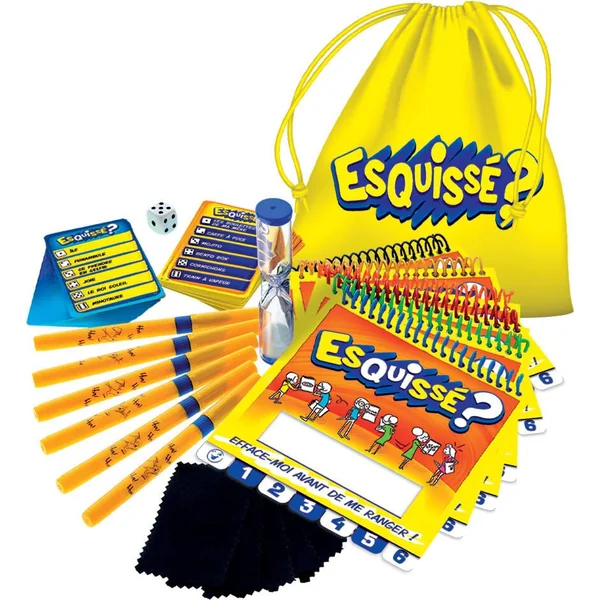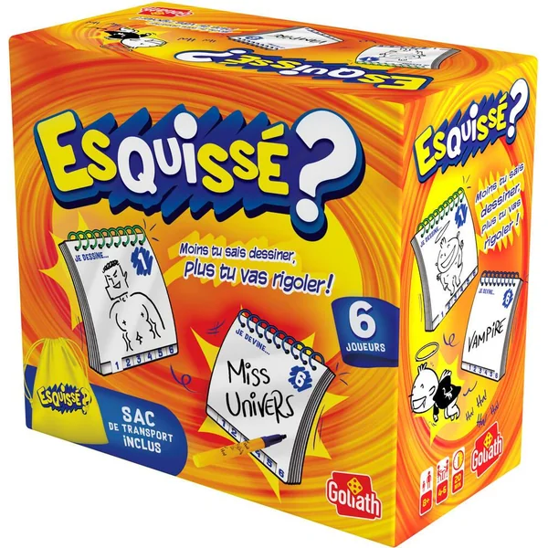 Dessine et passe le carnet à tes amis. Chacun votre tour devinez le dessin ou le mot de votre voisin. Sac de transport inclus. De 4 à 6 joueurs. Durée de la partie : 20 minutes.