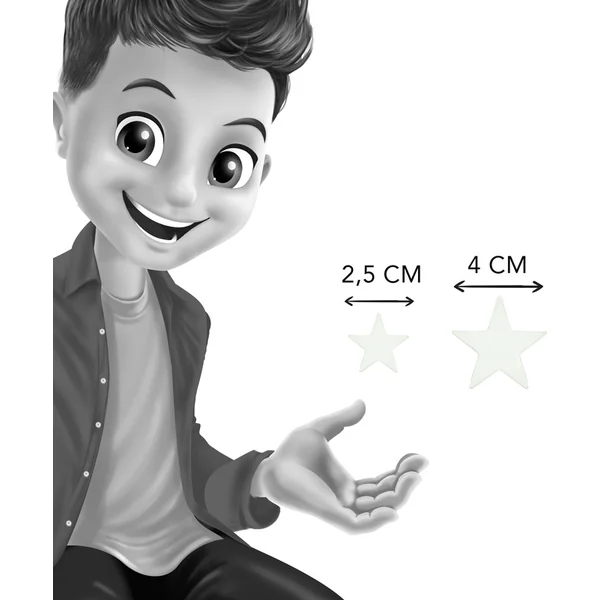 Es-tu fasciné par l’univers ? Décore le mur de ta chambre avec cette incroyable décoration qui brille dans l’obscurité. La taille des étoiles est de 2,5 et 4 cm et il y en a environ 50 pièces dans l’emballage.