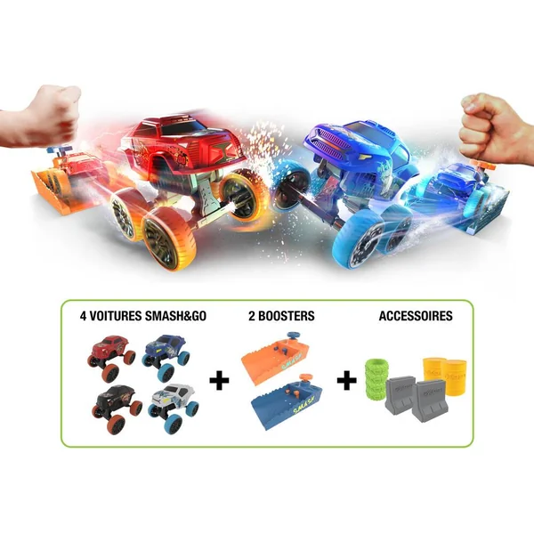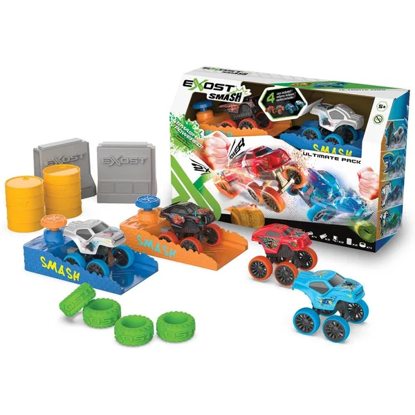 Découvre les nouvelles voitures à friction EXOST SMASH pour une explosion de vitesse : appuie sur la voiture, elle part à toute vitesse ! Ce pack contient 4 petites voitures à friction, 2 boostes et des accessoires. C’est le pack ultime pour un max de puissance ! Clipse la voiture sur le booster pour une accélération MAXIMALE. Chaque voiture mesure 8 cm.
