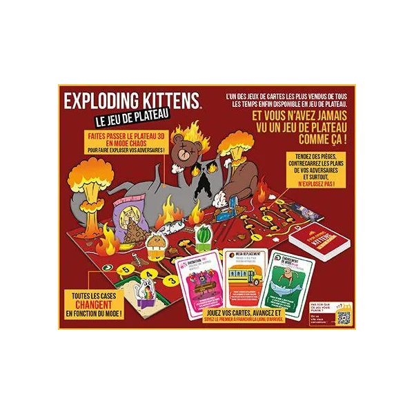 Soyez le premier à finir le parcours en évitant les cases piégées. Voici enfin le jeu de plateau réclamé par tous les joueurs de Exploding Kittens.