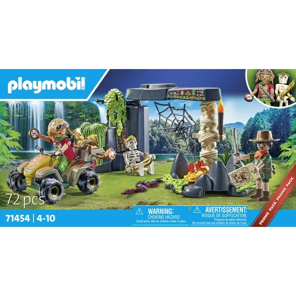 PLAYMOBIL 71454 – Explorateurs et ruine de la jungle – Comprend 2 personnages, un quad tout terrain, des ruines, un squelette et un trésor secret.