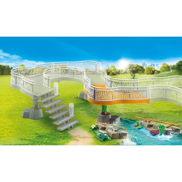 Le parc animalier Playmobil est un lieu que tout le monde adore, les petits comme les grands. On peut y observer une vingtaine d’espèces en semi-liberté, qui mènent chaque jour leur vie de famille avec leurs congénères et les autres espèces avec lesquelles ils cohabitent. Le parc est magnifique et il contribue à la sauvegarde des espèces en garantissant aux animaux un lieu de vie confortable où ils sont nourris, logés et choyés ! Les visiteurs empruntent un chemin bien précis pour visiter le parc afin de ne pas déranger les animaux, mais aussi de rester en sécurité. Ils pourront approcher et caresser les animaux qui n’attendent que ça lors de leur passage au jardin animalier !Avec tour d’observation et accessoires pour délimiter l’eau et l’herbe. Cet article est parfait pour compléter le monde du zoo. La tour d’observation peut être combinée avec la réf. 70341 Parc animalier et la réf. 70343 Famille de lion avec végétation.