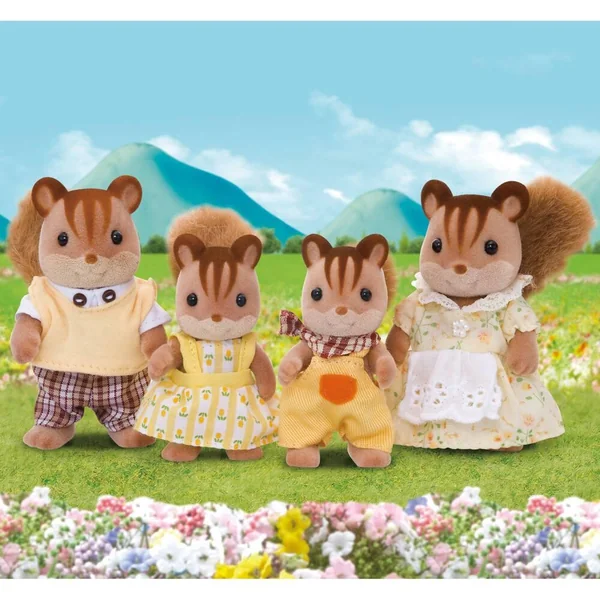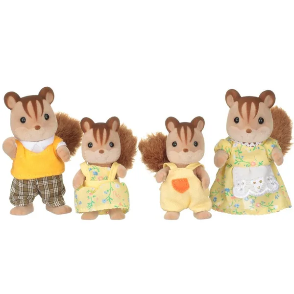 La famille écureuil roux est composée de 4 personnages : la maman, le papa, le fils et la fille. Ils sont tous articulés et habillés avec soin. Leurs vêtements peuvent être enlevés et remis à loisir.