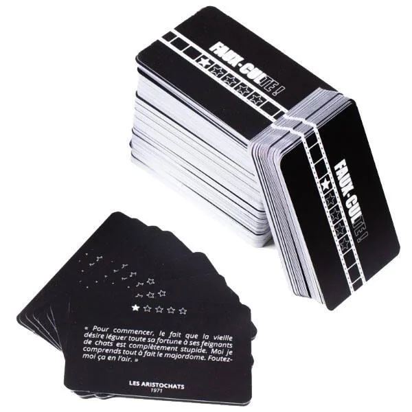 Un jeu pour se marrer qui contient 220 critiques spectateurs improbables sur des films tellement cultes que vous les connaissez, même sans les avoir vus ! À tour de rôle, chacun pioche une carte et déclame le commentaire avec le ton qui convient. Le premier parmi les autres joueurs, qui devine le titre du film, remporte la carte. À la fin de la partie, le joueur qui a remporté le plus de cartes remportent la partie. Nombre de joueurs 2 à 42. Durée 20 minutes.