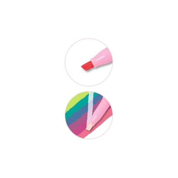 La double pointe est astucieuse : une face colorée pour tracer, une face gommante pour corriger ou jouer avec les effets. Des feutres au design graphique : un look tendance et une pointe de 4 mm pour une utilisation fluide et précise.