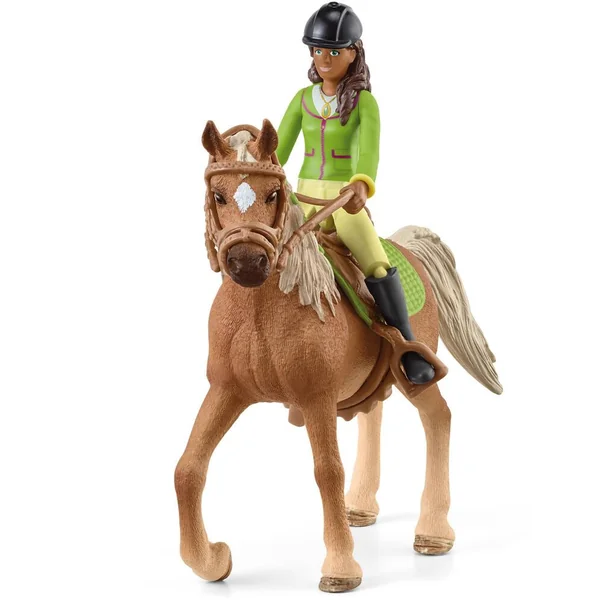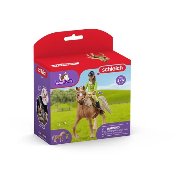 Rien ne pourra séparer Horse Club Sarah & Mystery de Schleich® Horse Club. Lorsque Sarah galope sur sa jument arabe sur les grandes étendues vertes, qu’elle patauge dans les ruisseaux ou erre dans les bois, les deux sont en parfaite communion. La figurine Sarah porte une bombe, elle est entièrement articulée et peut donc poser la bride et les rênes de son cheval, puis monter en selle et galoper. Avec son joli bracelet jaune, Sarah montre qu’elle est membre du Horse Club.