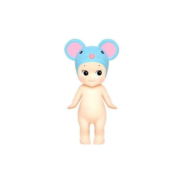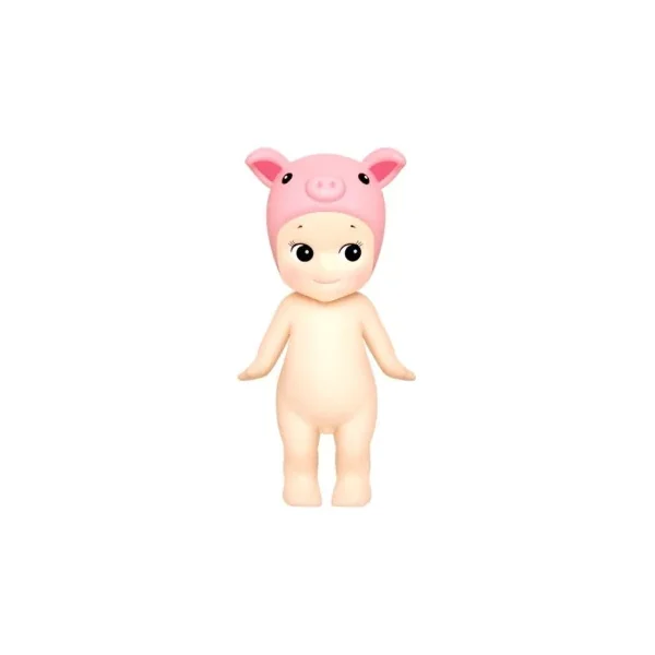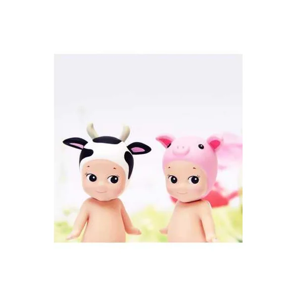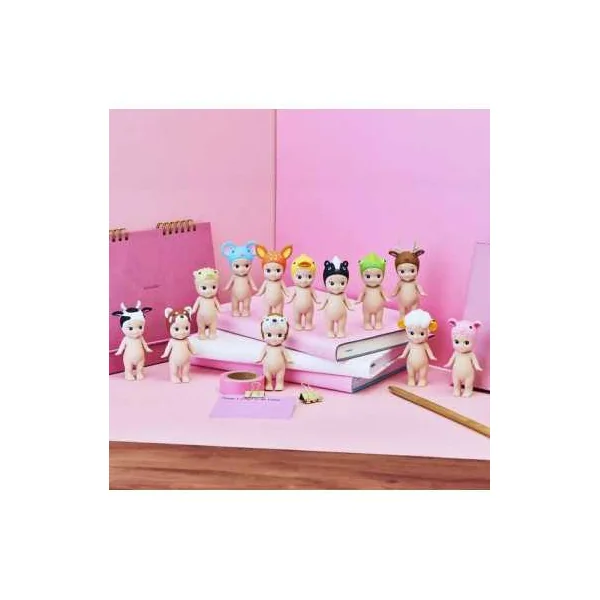 Sonny Angel est un petit ange mignon avec des ailes minuscules dans le dos, un derrière rebondi et des joues toutes roses et qui porte toutes sortes de couvre-chefs différents : la tête d’une souris, d’un canard, d’une vache, d’un cochon…