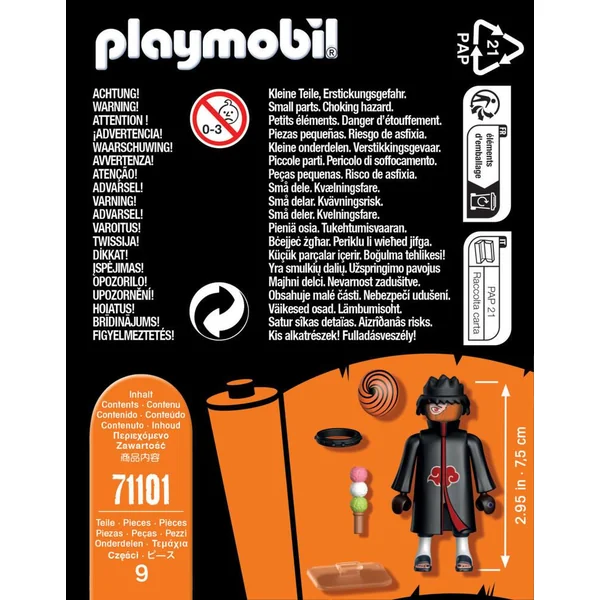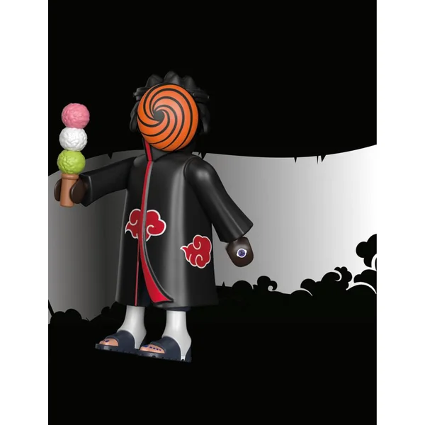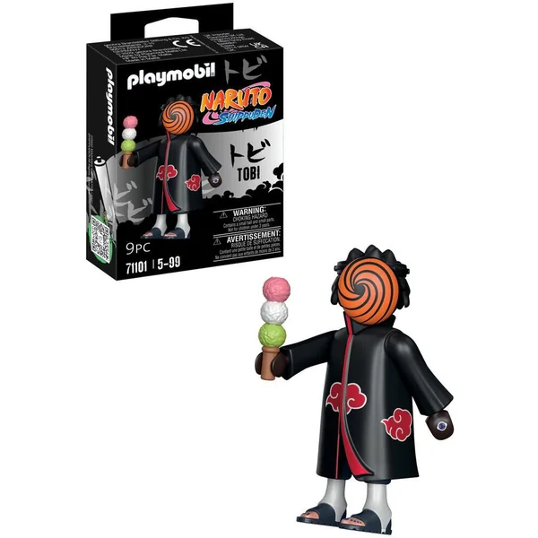 Figurine Playmobil® Tobi sous licence Naruto Shippuden, mesure 7,5cm, avec accessoires. Obito Uchiwa est l’un des principaux antagonistes du manga Naruto. Il apparaît dans le manga sous l’identité de Tobi, un membre d’Akatsuki portant constamment un masque orange au motif spiralé percé d’un trou à l’œil droit.