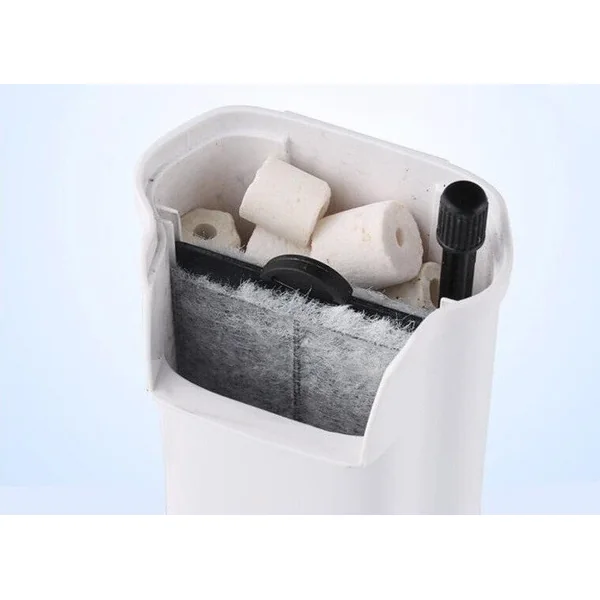 - La filtration ne nécessite pas d’immersion complète. Il suffit de placer le dispositif à seulement 3 centimètres sous la surface de l’eau. Cela permet d’utiliser la filtration dans n’importe quel réservoir (peu profond ou profond).