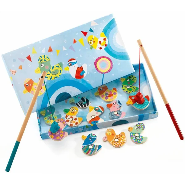 Un jeu d’adresse pour les petits, avec 12 canards magnétiques et 2 cannes à pêche.