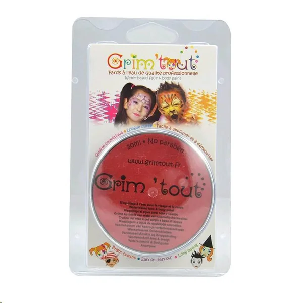 GRIM’TOUT est un maquillage non gras à l’eau de qualité spécialement conçu pour convenir aux peaux délicates des enfants. Toujours dilué à l’eau, il s’applique simplement à l’aide d’une éponge ou d’un pinceau ! Démaquillage aisé à l’eau et au savon. Qualité professionnelle et conformité aux normes cosmétiques. Le galet de 20ml est idéal pour maquiller rapidement les enfants.