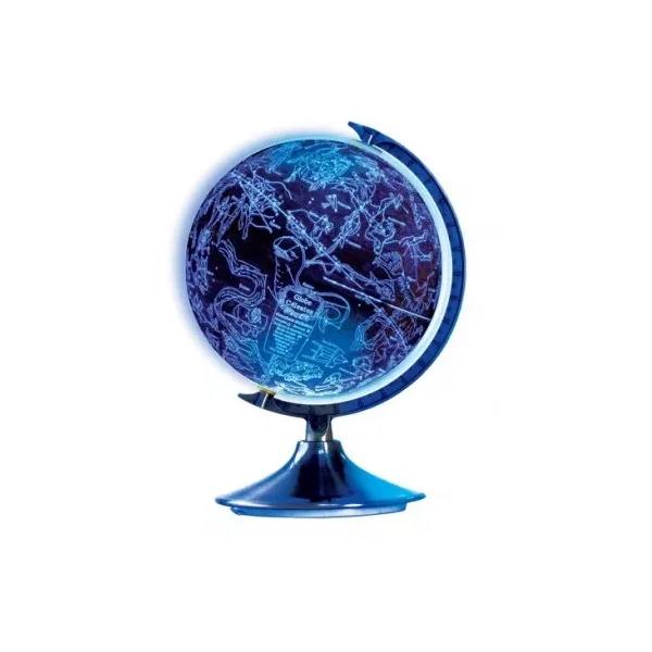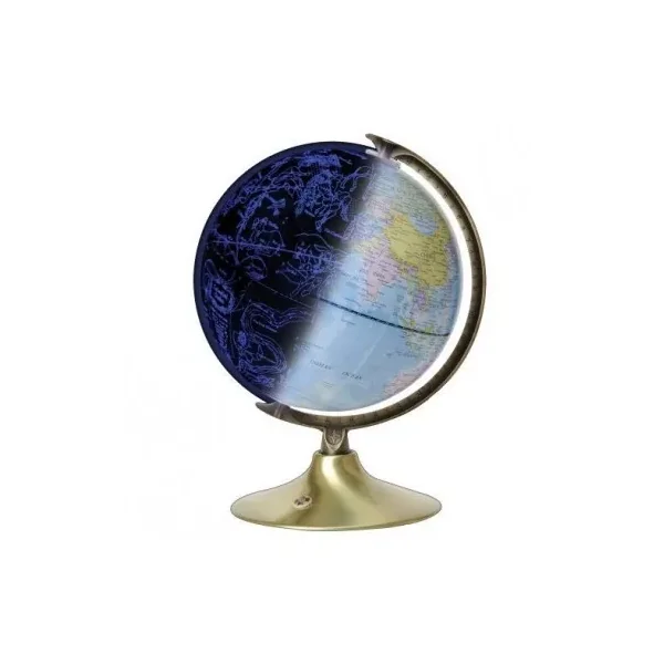 Un magnifique globe monté sur un socle en métal qui offre une fonction jour et une fonction nuit. De jour, vous pourrez observer les pays, les mers, les montagnes… et de nuit le globe s’allume pour dévoiler 88 constellations. Le capteur photosensible allume automatique le globe, la lumière LED est douce ce qui permet au globe de servir également de veilleuse.