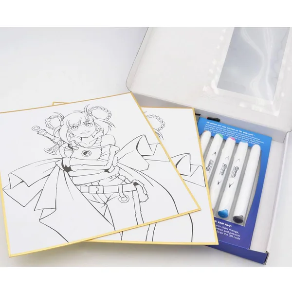 Kits d’initiation aux mangas. Simples, complets, ludiques, ils offrent le plaisir de réussir la mise en couleur de son 1er manga…Contenu du kit: 2 Shikishi (Planches à dessiner pré-imprimées), 5 marqueurs pour Mangaka, pointe pinceau + pointe fine, 5 couleurs différentes par modèle, 1 tuto vidéo en pas à pas.