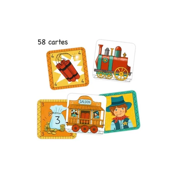 DécouvrezGolden train de Djeco, un jeu de cartes sur le thème du Far West pour jouer dès 6 ans.