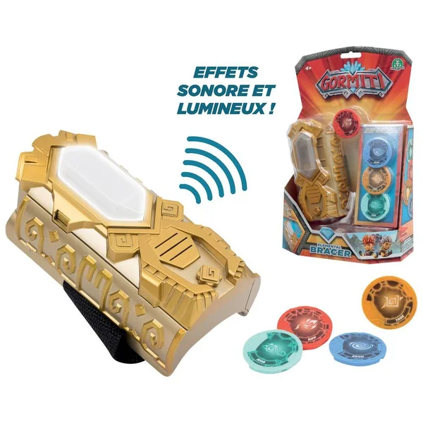 Le bracelet qui permet de convoquer les Gormiti , dans une version détaillée compatible avec les jetons Figurines. En les insérant dans le bracelet, vous obtiendrez des effets sonores et lumineux issus de la série animée, pour « évoquer » vos héros préférés ! Inclus 4 jetons EXCLUSIFS.