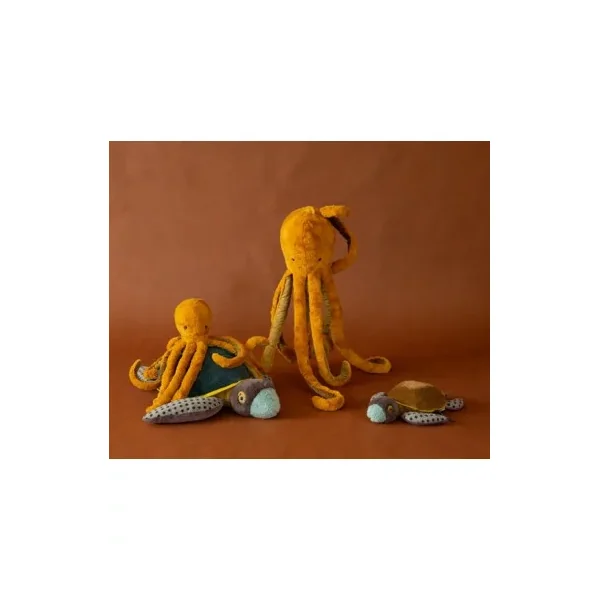 Découvrez le grand poulpe de la collection Tout autour du monde sous la mer de Moulin Roty, une peluche de 69 cm à offrir en cadeau de naissance. Une peluche toute douce pour câliner votre bébé et décorer sa chambre.