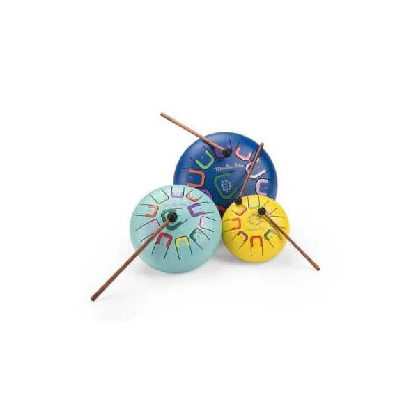 Avec ses 11 notes colorées et numérotées, ce tambour permet de jouer des mélodies relaxantes et envoûtantes. Les enfants peuvent explorer le plaisir des percussions en jouant avec leurs mains, le bout de leurs doigts, ou à l’aide des baguettes fournies.