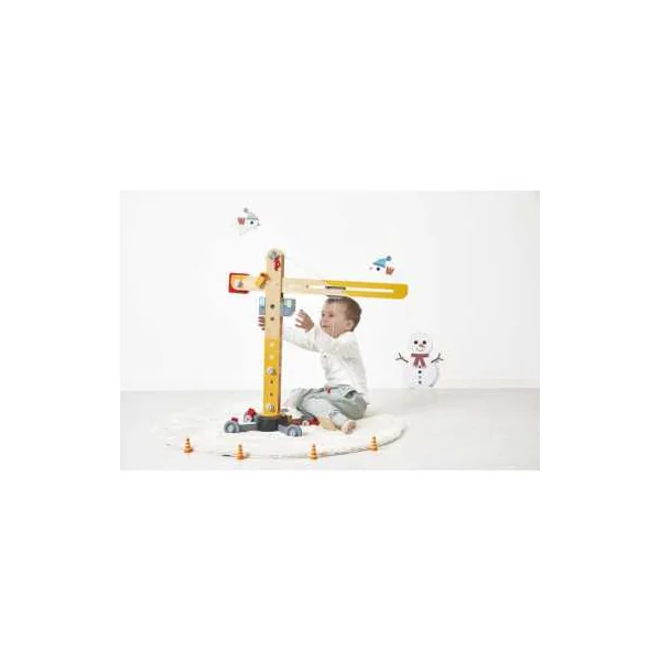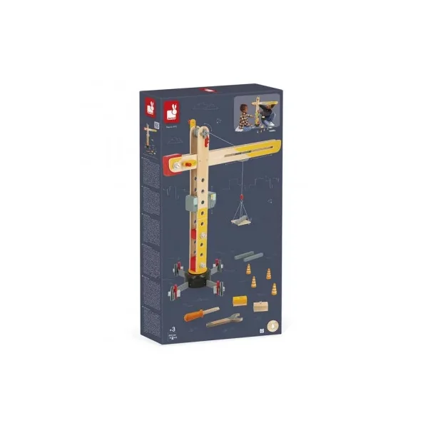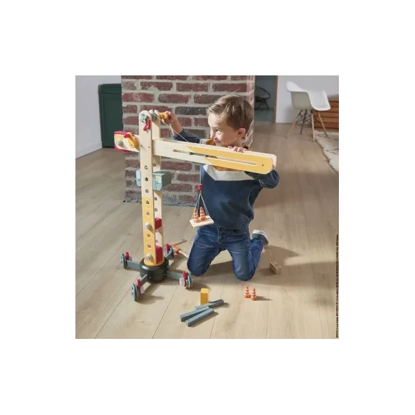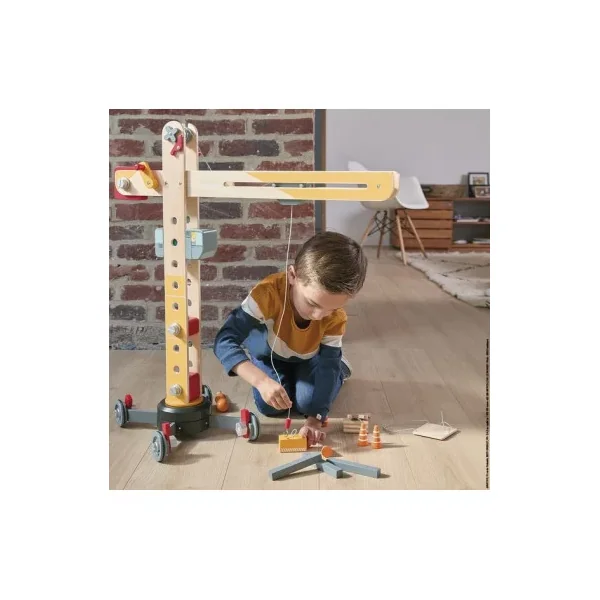 Découvrez la grande grue Bolid de Janod, une première grue en bois pour les enfants à partir de 3 ans. Un cadeau de la nouvelle collection Bolid au look vintage.