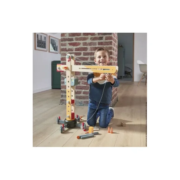 Une grue à assembler à la manipulation facile avec un système de blocage pour stopper les roues. Livré avec 10 accessoires et 2 outils, votre enfant prendra plaisir à monter sa grue et à s’improviser chef de chantier.