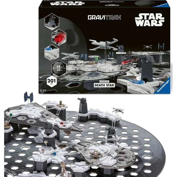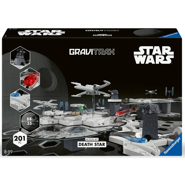Des duels spatiaux remplis d’action prennent vie avec ce GraviTrax Theme Set Star Wars. Vous êtes invités à une rencontre de légende entre l’Empire et les rebelles de Star Wars. Les 188 pièces de construction et les éléments d’action GraviTrax sont entièrement exclusives, réalistes et adaptées au design de Star Wars comme la plaque de base Étoile de la mort, les éléments 3D vaisseaux spatiaux ou encore les plaques de hauteur Faucon Millenium et Destroyeur. Ce Starter Set est idéal pour découvrir l’univers GraviTrax ou compléter ta collection avec les 188 pièces. Ce coffret GraviTrax Star Wars se combine avec tous les produits de la gamme GraviTrax. Créez des circuits de billes spectaculaire, en plein cœur du Dark Side !
