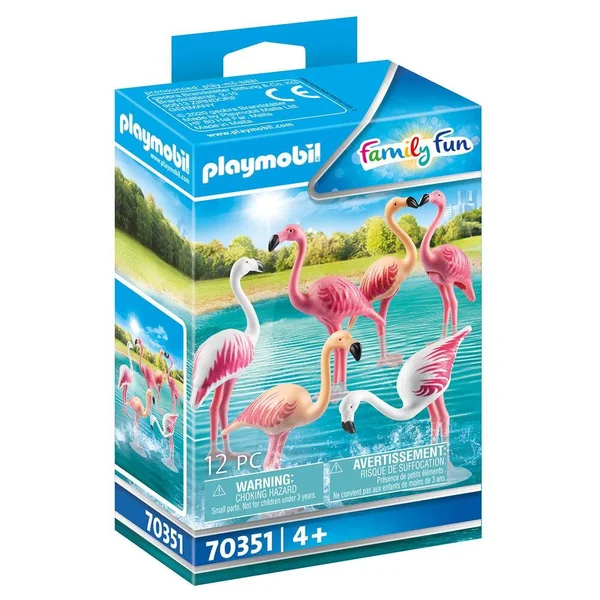 Le parc animalier Playmobil est un lieu que tout le monde adore, les petits comme les grands. On peut y observer une vingtaine d’espèces en semi-liberté, qui mènent chaque jour leur vie de famille avec leurs congénères et les autres espèces avec lesquelles ils cohabitent. Le parc est magnifique et il contribue à la sauvegarde des espèces en garantissant aux animaux un lieu de vie confortable où ils sont nourris, logés et choyés ! Les visiteurs empruntent un chemin bien précis pour visiter le parc afin de ne pas déranger les animaux, mais aussi de rester en sécurité. Ils pourront approcher et caresser les animaux qui n’attendent que ça lors de leur passage au jardin animalier ! Ces flamands roses s’amusent dans l’eau. Contient six flamands roses.