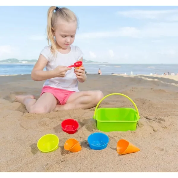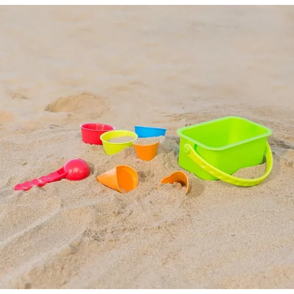 Avec leur style et leur design visuel, elles conviennent aussi bien aux garçons qu’aux filles. Elles sont un produit de la marque allemande Hape, avec des couleurs ludiques et joyeuses et une taille idéale pour les petites mains d’enfants. Le set de sable comprend un grand récipient à glace avec une poignée, une cuillère à glace séparée et 3 cornets ainsi que 3 gobelets à glace séparés.