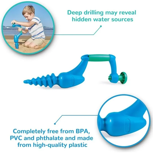 Si vous percez assez profondément, vous pourriez trouver de l’eau ! Sur la plage, c’est très probable. Avec ce perceuse originale pour le sable, vous serez certainement le centre d’attention dans le bac à sable et il est possible que vous vous fassiez de nouveaux amis grâce à elle.