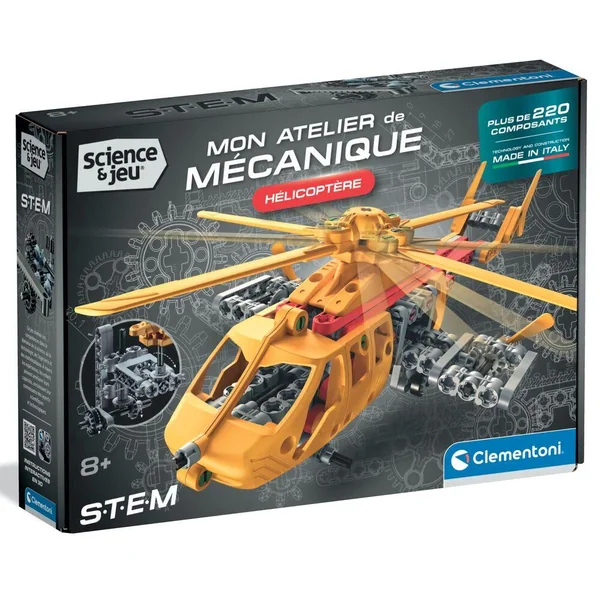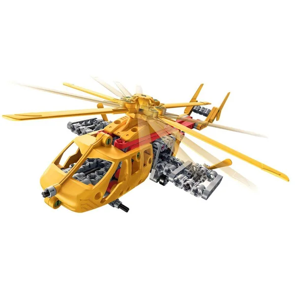 • Un coffret de construction pour s’amuser à assembler un prototype d’hélicoptère. • Le modèle comprend des pales et des engrenages rotatifs qui reproduisent de manière réaliste le mouvement mécanique de rotation de l’hélicoptère. Le rotor principal, le rotor de queue et les rotors latéraux se déplacent en même temps que les roues du véhicule.