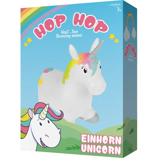 Hopsadlo HOpHOp licorne en couleur blanche avec une crinière colorée et une queue colorée.