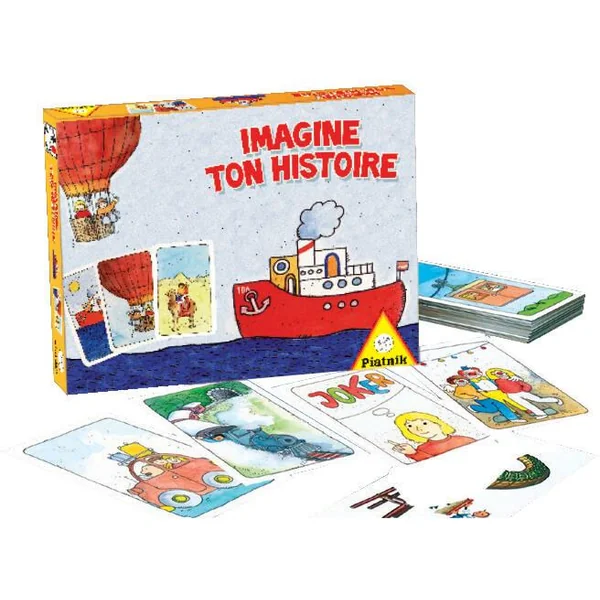 Un jeu qui développe l’imagination des enfants. But du jeu : D’après 36 cartes sur le thème des vacances, les enfants construisent des histoires qu’ils imaginent au gré des cartes qu’ils retournent. Règle du jeu : L’histoire en chaîne. Le premier joueur pioche une carte qu’il pose sur la table face découverte et commence à raconter une histoire en rapport avec le visuel. Chaque joueur, à tour de rôle, continuera l’histoire en piochant une carte qu’il déposera sur la table. A chacun son histoire. A partir de trois cartes distribuées à chaque joueur, chacun inventera une histoire appropriée aux trois visuels de ses cartes. L’histoire la plus «sympa» sera choisie par un vote. Rangée d’histoires. En déposant des cartes devant le joueur de leur choix, les participants compliquent l’histoire de chacun, forçant ainsi l’imagination à se développer. Le résultat peut-être fantastique ou abracadabrant…