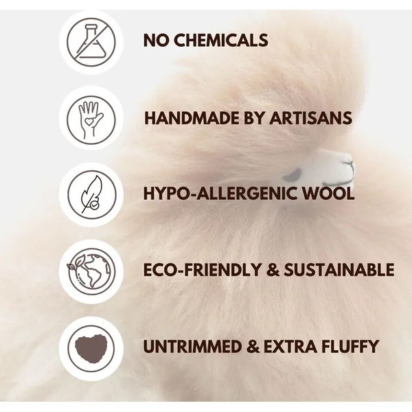 Vous tomberez amoureux des Alpaky Inkari dès le premier contact – elles sont incroyablement douces, fabriquées à la main et pleines du charme péruvien unique. Chacune d’elles est faite de laine d’alpaga naturelle, qui est plus douce que le cachemire et hypoallergénique, ce qui la rend idéale pour les enfants et les adultes. En plus de leur magnifique apparence, elles portent également une forte histoire de durabilité et de soutien aux artisans locaux des Andes – elles sont donc bien plus que de simples jouets en peluche.