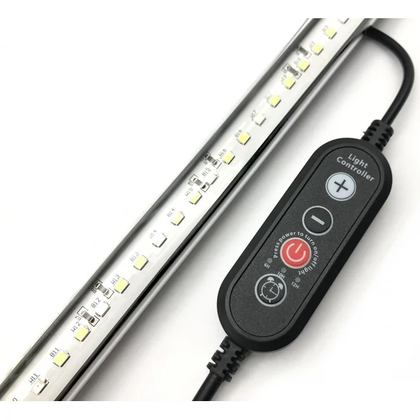 L’éclairage offre des puces WRGB de haute qualité, qui aident à mettre en valeur les couleurs vives des animaux et des plantes dans votre réservoir. L’éclairage peut être réglé sur des conditions individuelles à l’aide d’un variateur manuel intégré dans le câblage. L’éclairage propose 10 niveaux d’intensité.
