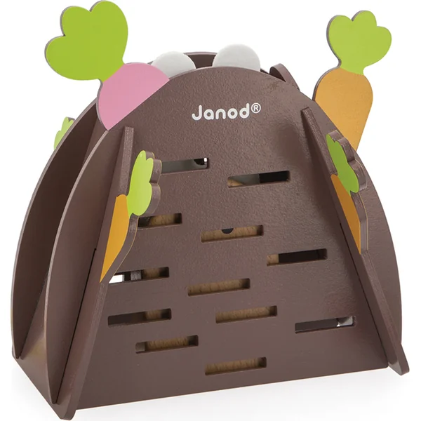 - Contenu de la boîte : 1 terrier en bois, 12 carottes en bois, 1 lapin en bois et 1 dé en bois