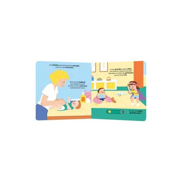 L’enfant découvre 10 rituels pour l’aider à appréhender l’arrivée de son petit frère ou de sa petite sœur, à travers des mécanismes simples à activer. Il découvre comment participer à la vie de bébé et trouver sa nouvelle place dans la famille. Un livre tendre et rassurant pour accompagner l’enfant dans ce grand chamboulement !