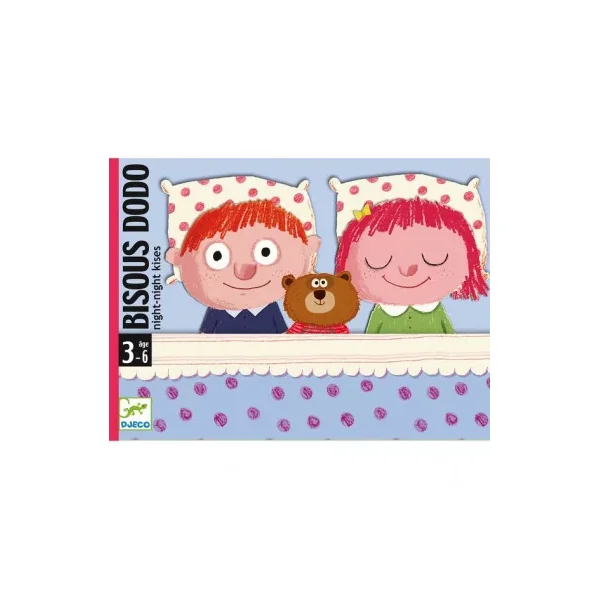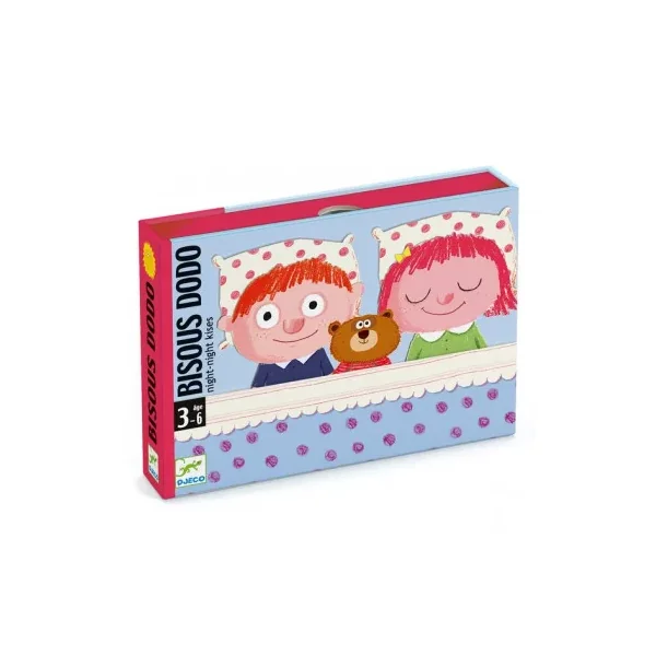 Découvrez Bisou dodo de Djeco, un jeu de cartes adapté aux plus petits dès 3 ans, qui deviendra vite un rituel au moment du coucher : un oreiller, un drap et un doudou à trouver, des bisous à recevoir et… bonne nuit!