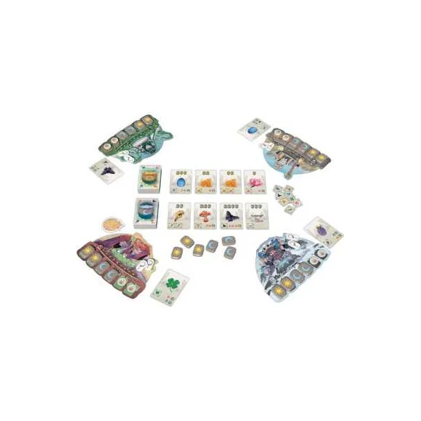 Ce jeu contient 72 fiches d’ingrédients, 8 jetons de cadenas, 4 jetons, 22 runes à double face, 8 jetons de faucille, 1 jeton d’ancêtre, 4 planches, 8 jetons d’ingrédients bonus et 1 bloc de score.
